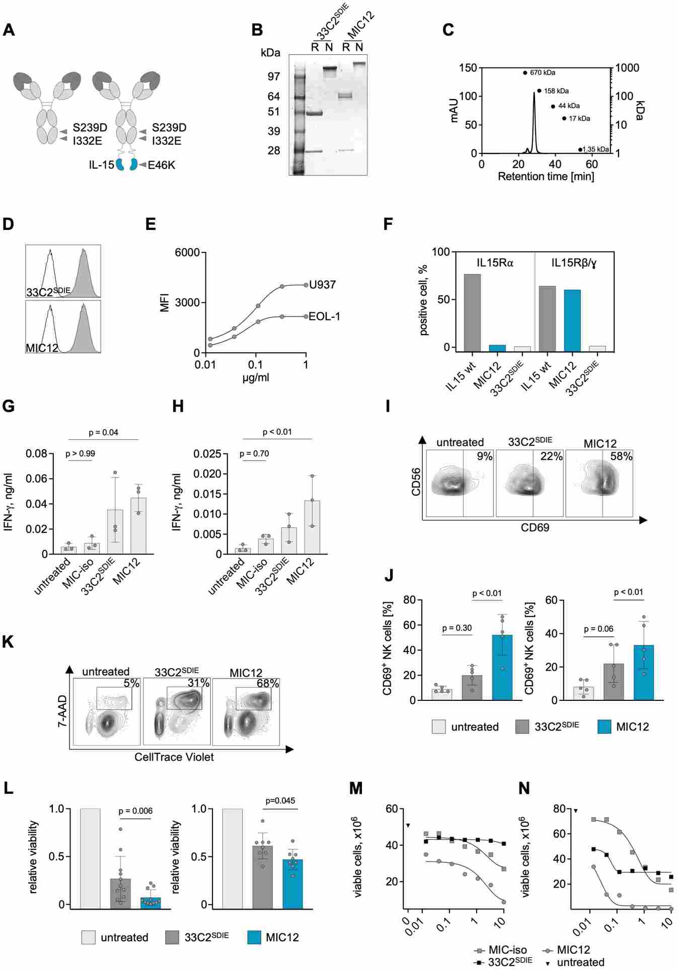 2. NK cell proliferation: Unlike Fc-optimized antibodies, which activate but do not expand NK cells, MIC+ drives measurable NK cell proliferation through sustained IL-15Rβγ engagement—functionally reconstituting the "missing" IL-15Rα trans-presentation in the tumor niche.